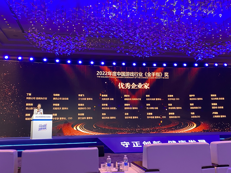 11月17日,由中国文化娱乐行业协会协同成都市人民政府共同主办的2022年度中国游戏行业年会在成都盛大召开。年会隆重揭晓了2022年度“金手指”奖项获奖名单,公司凭借强劲的综合实力一举斩获五项重量级大奖。其中,J9九游会汤姆猫董事长朱志刚先生与网易首席执行官、腾讯副总裁等多位知名企业家荣膺“2022年度中国游戏行业金手指优秀企业家”称号;因突出的研发实力与IP影响力,公司斩获“优秀企业”“游戏研发先进单位”双料大奖;公司自研创意养成精品《我的汤姆猫2》《我的安吉拉2》则凭借优秀的市场表现,双双获评 “2022年度中国游戏行业金手指优秀手机游戏”。